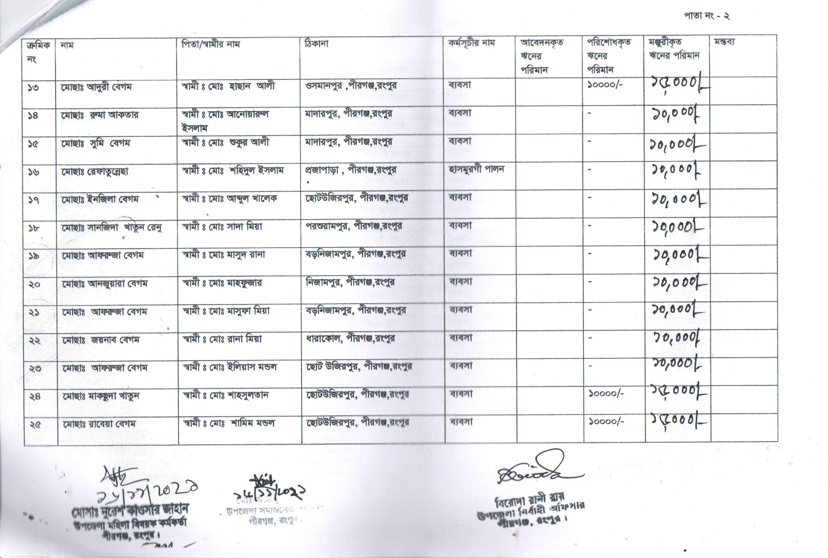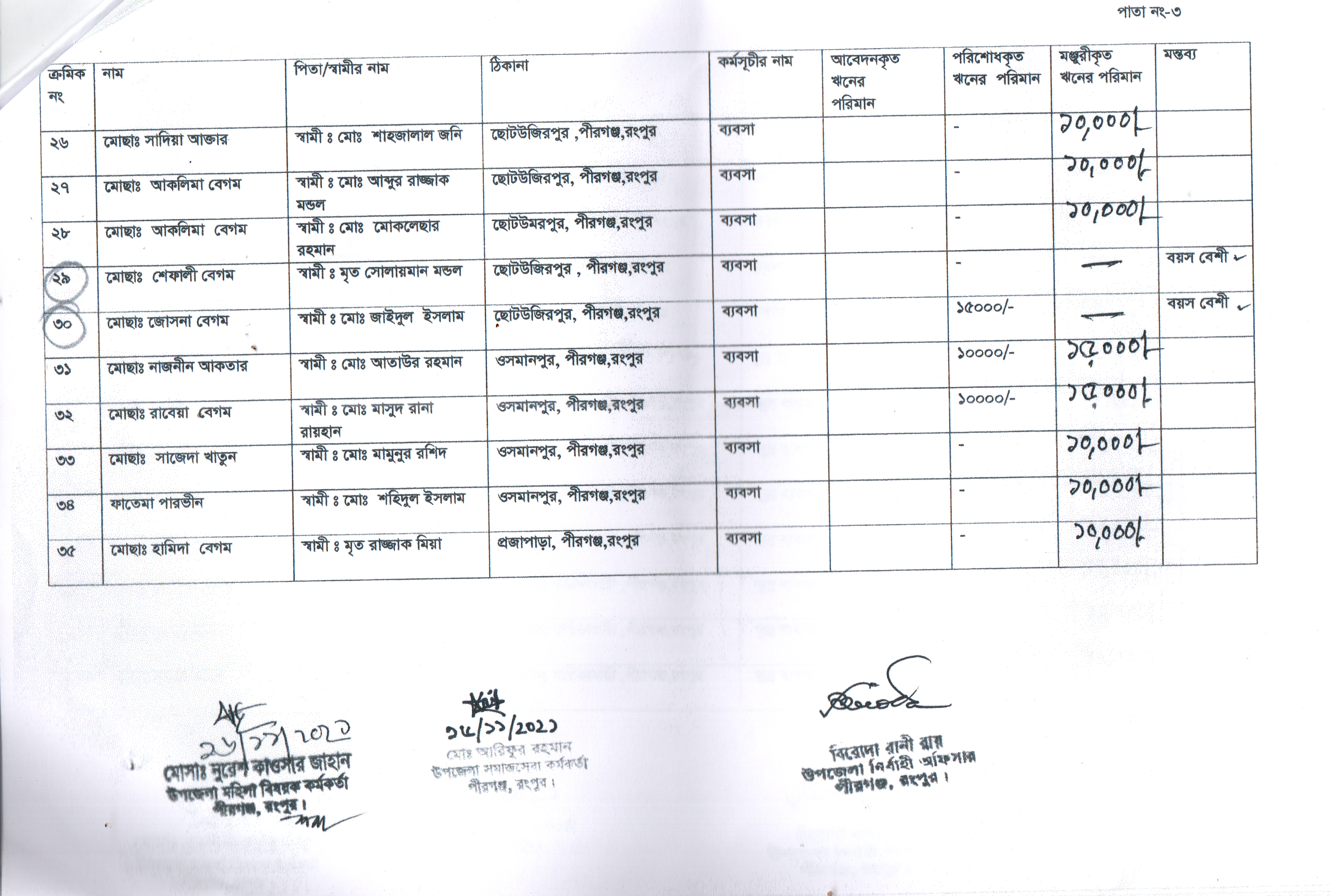 | ৩ | পীরগঞ্জ উপজেলা মহিলা বিষয়ক ভিডব্লিউবি ২০২২-২০২৩ চক্রের এর তালিকা | দেখুন |
